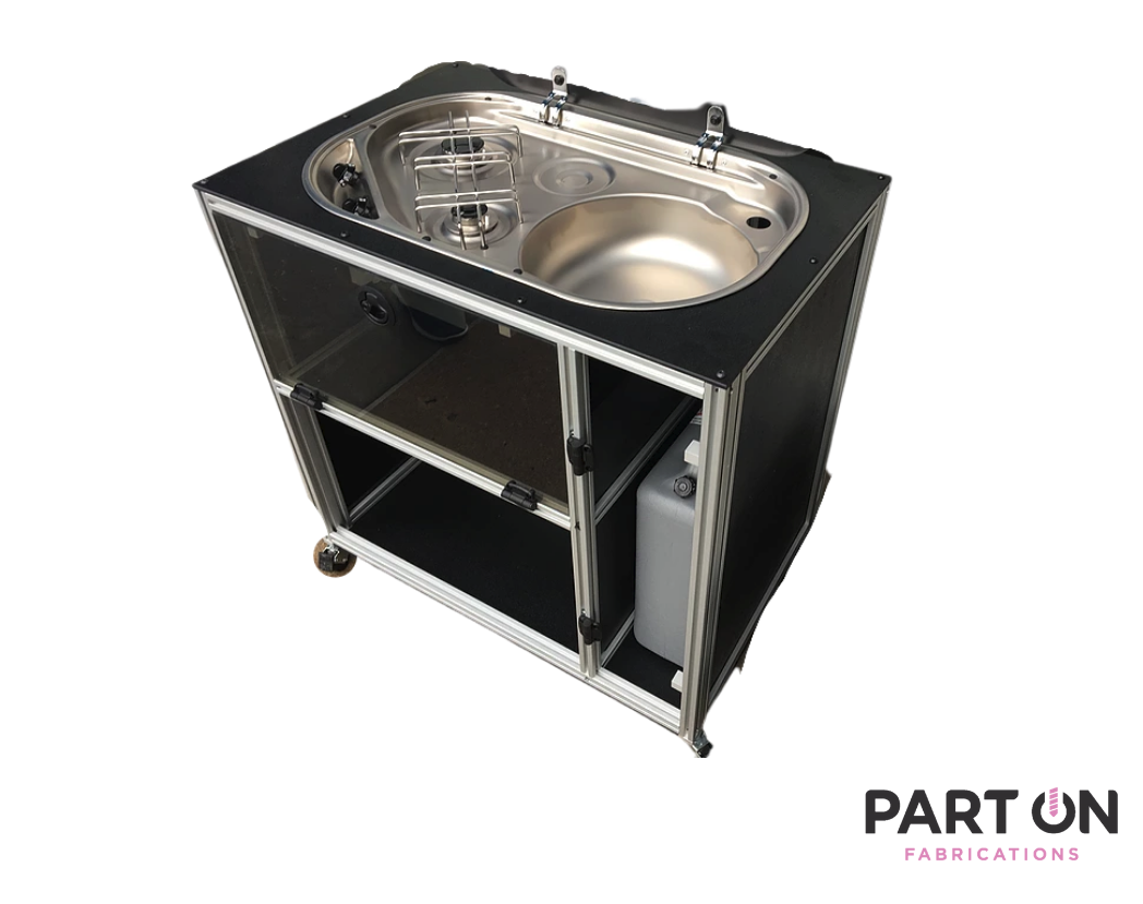 You can request this bespoke solution to be made to size suit your van/camper. In addition, you can add Start-stop castors to the product to achieve a portable sink/cooking area, which can also be secured when traveling.