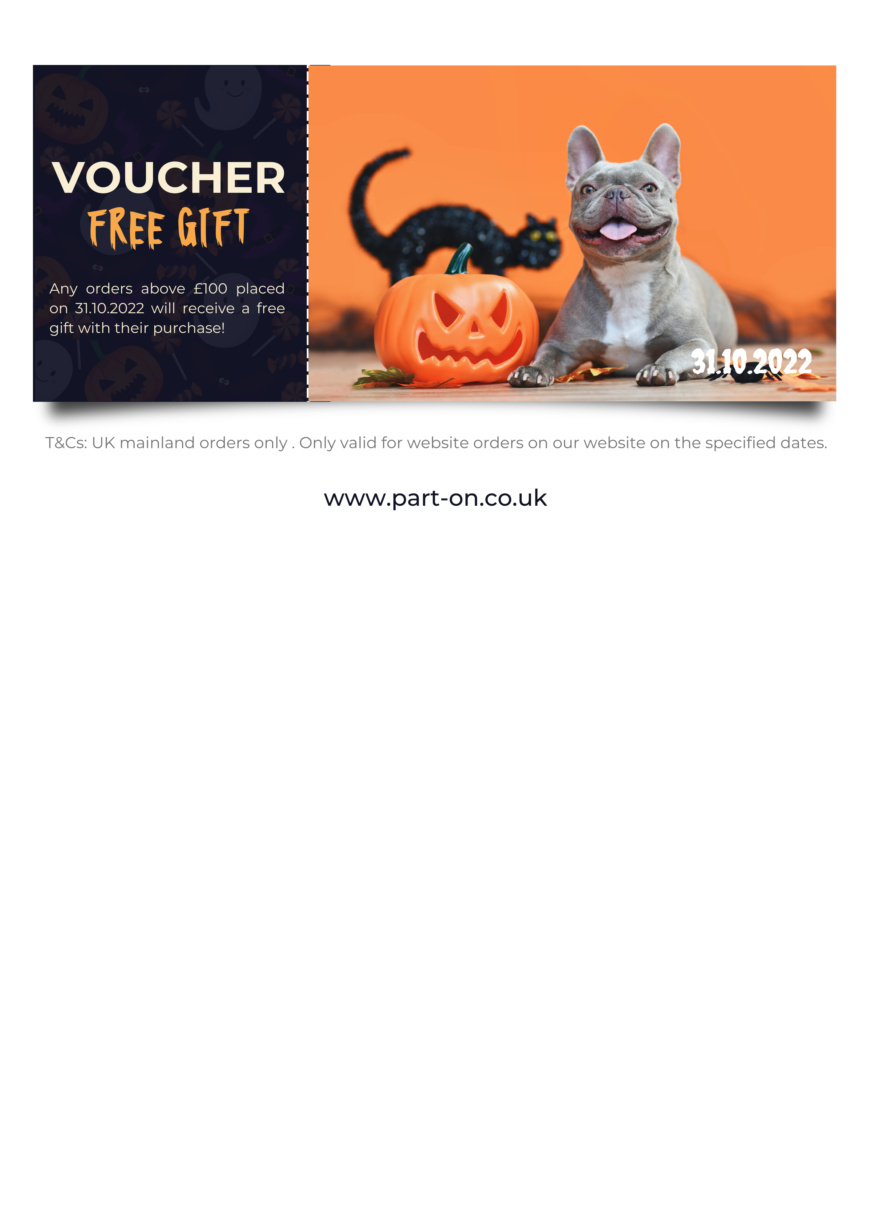 <![CDATA[Halloween 2022 - 7 DAYS OF OFFERS]]> https://www.part-on.co.uk/blog/post/halloween-2022-7-days-of-offers https://www.part-on.co.uk/blog/post/halloween-2022-7-days-of-offers Fri, 14 Oct 2022 00:00:00 GMT