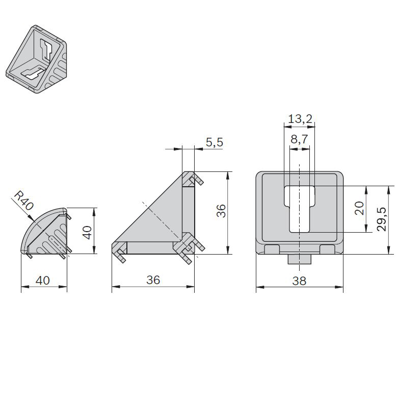 | Description | Genuine Bosch Rexroth 40 x 40mm Standard Bracket, 10mm Slot |