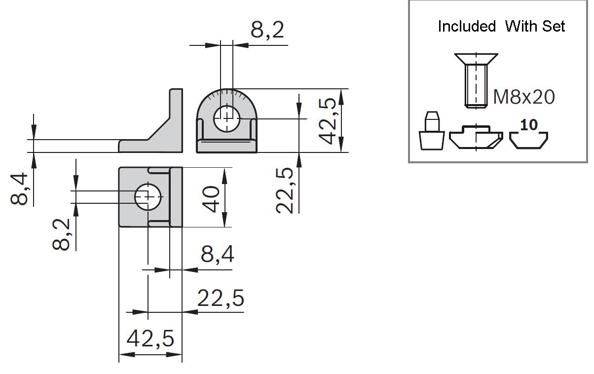 | Description | Genuine Bosch Rexroth 40 x 43mm Round Bracket, 10mm Slot |
