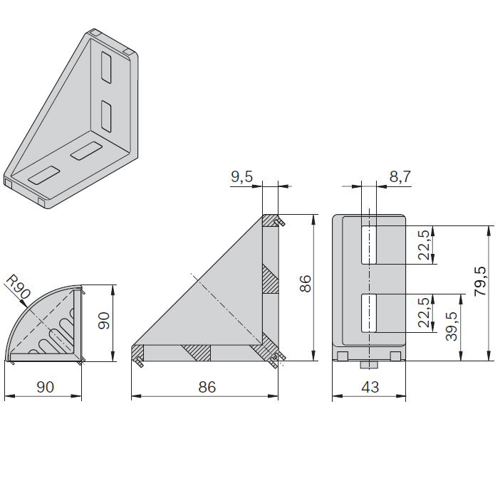 | Description | Genuine Bosch Rexroth 45 x 90mm Standard Bracket, 10mm Slot |