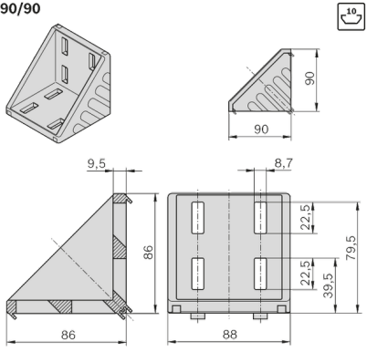 | Description | Genuine Bosch Rexroth 90 x 90mm Standard Bracket, 10mm Slot |
