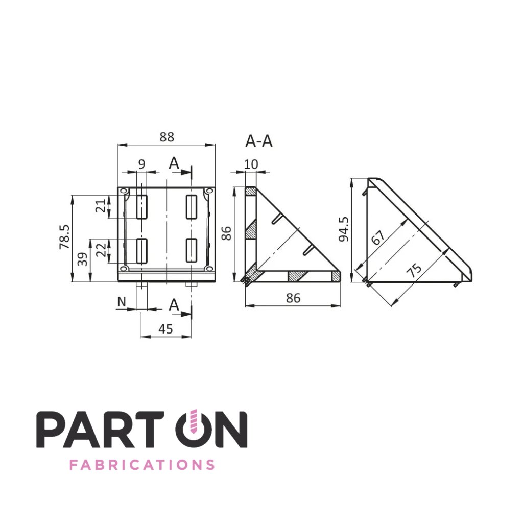 | Description | Part-on Range 90 x 90mm Standard Bracket, 10mm Slot Bosch Rexroth Compatible |