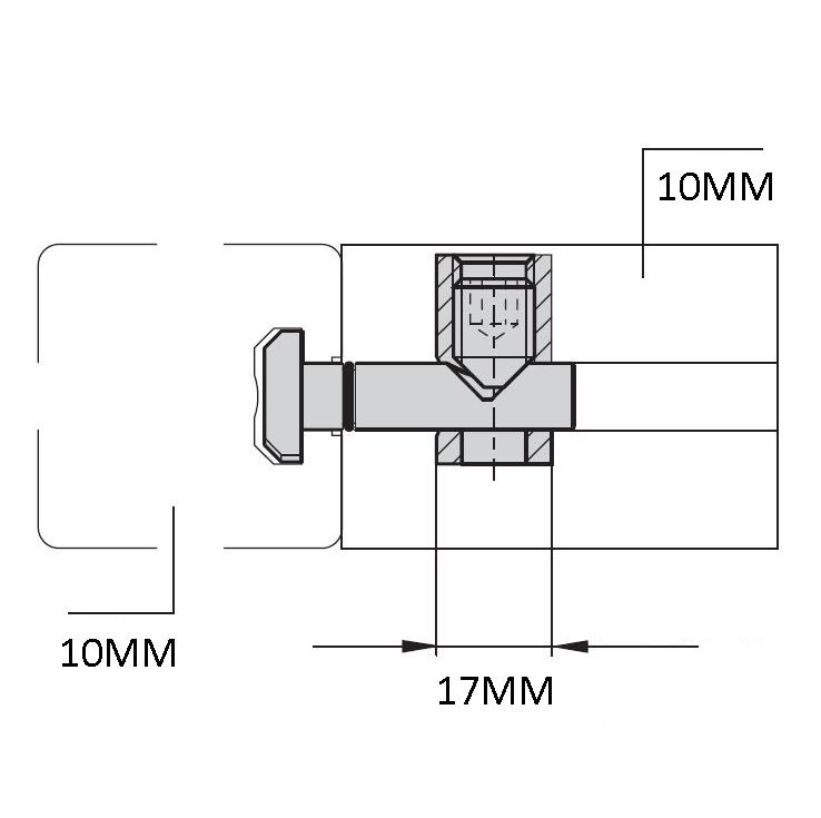 Quick Connector which enables you to connect a 10mm slotted profile to another 10mm slotted profile.