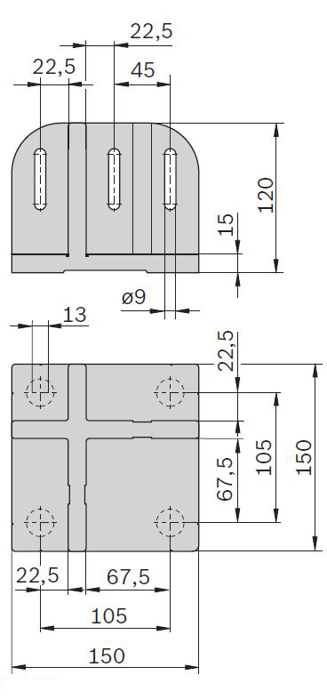 | Description | Genuine Bosch Rexroth 150 x 150mm Base Plate, 10mm Slot |