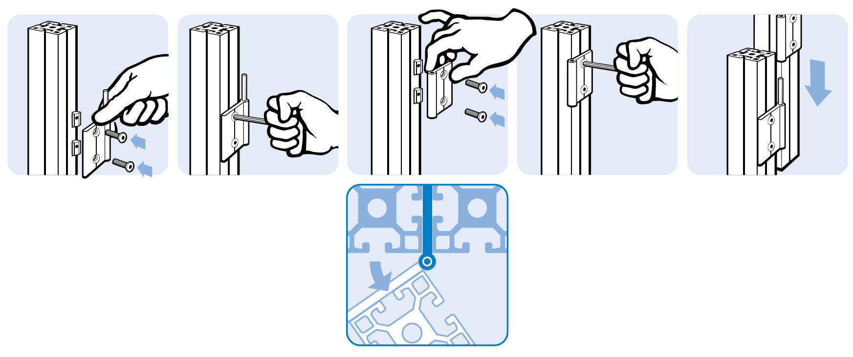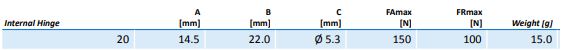 Part-on Range 20 x 20mm Internal Hinge Bosch Rexroth Compatible.