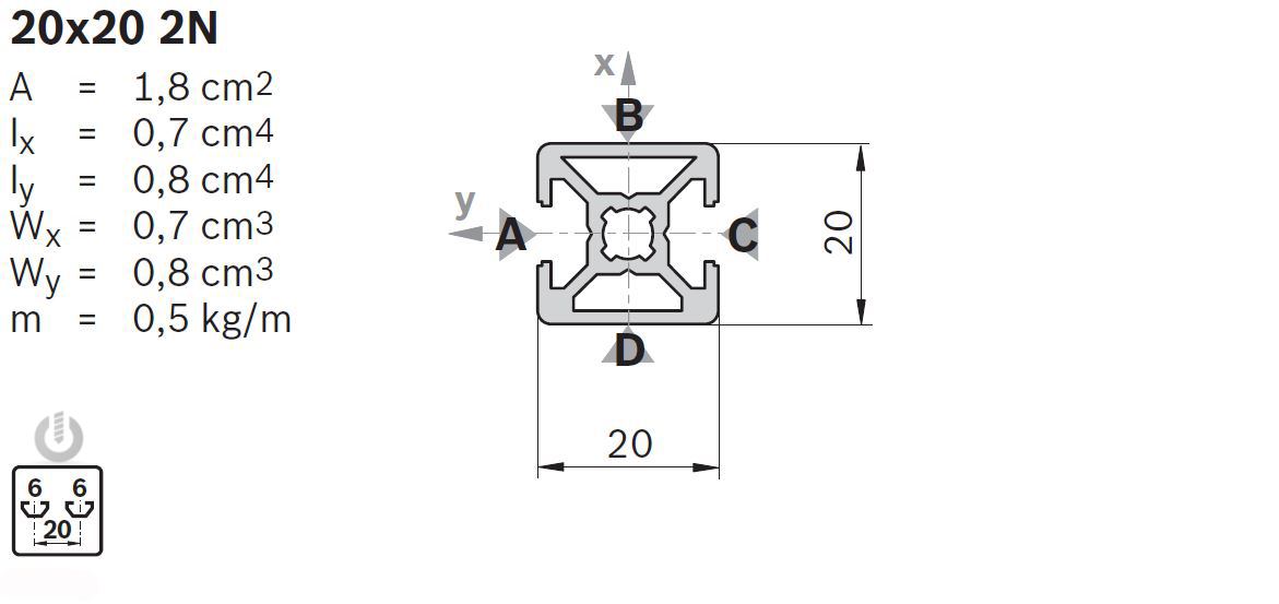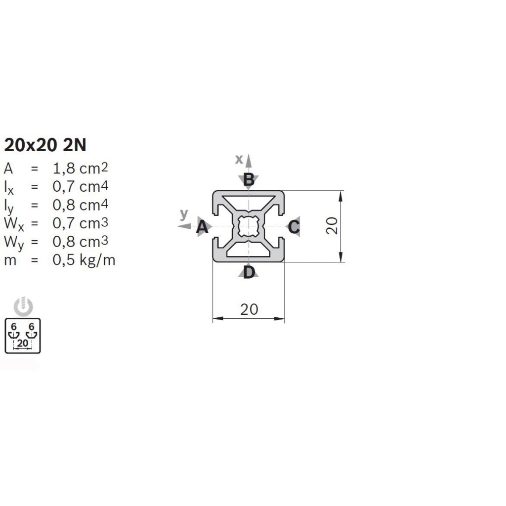 | Description | Aluminium Strut Profile 6mm groove | 20 x 20mm | 2N | Genuine Bosch Rexroth |