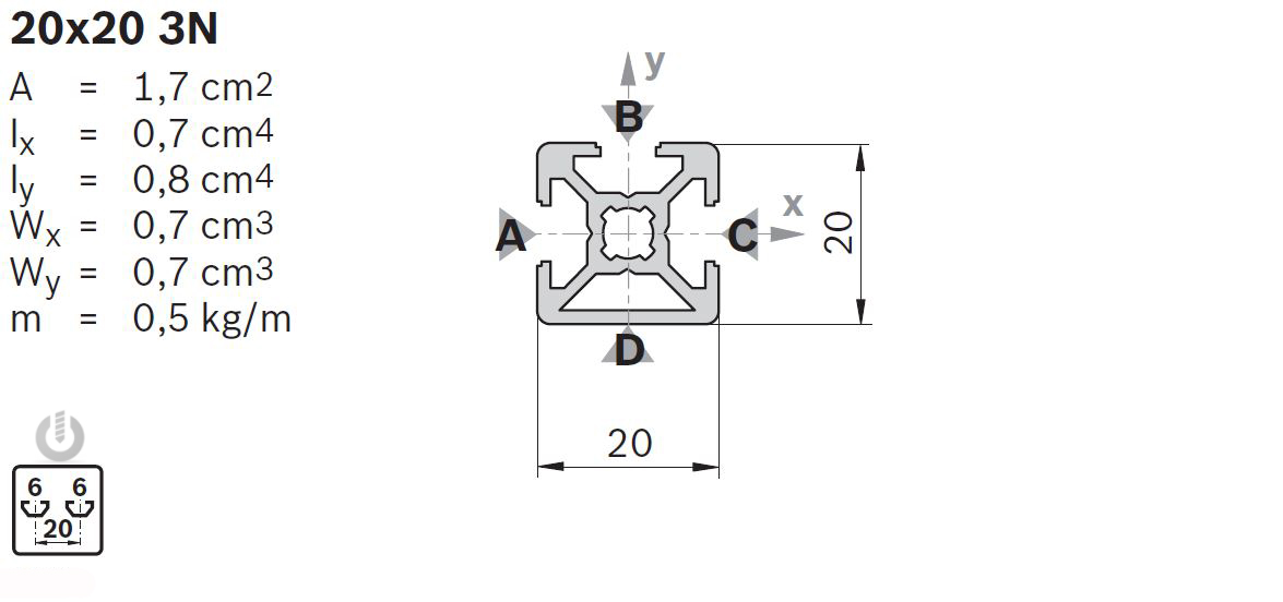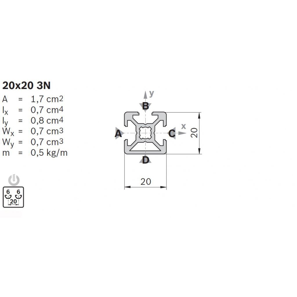 | Description | Aluminium Strut Profile 6mm groove | 20 x 20mm | 3N | Genuine Bosch Rexroth |