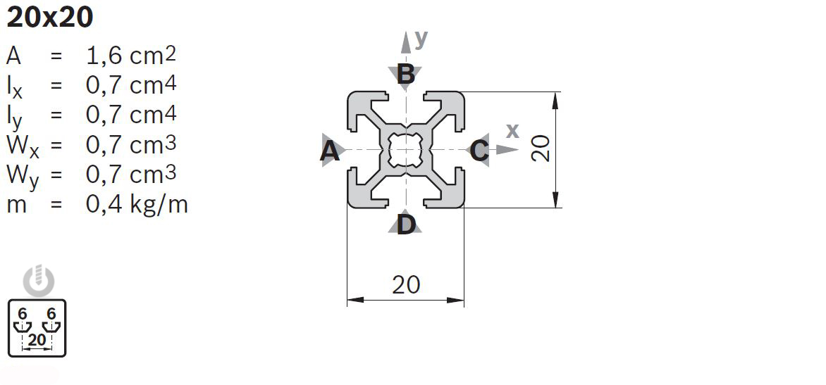 | Description | Aluminium Strut Profile 6mm groove | 20 x 20mm | Genuine Bosch Rexroth |