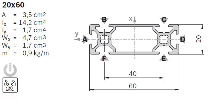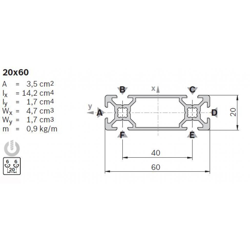 | Description | Aluminium Strut Profile 6mm groove | 20 x 60mm | Genuine Bosch Rexroth |