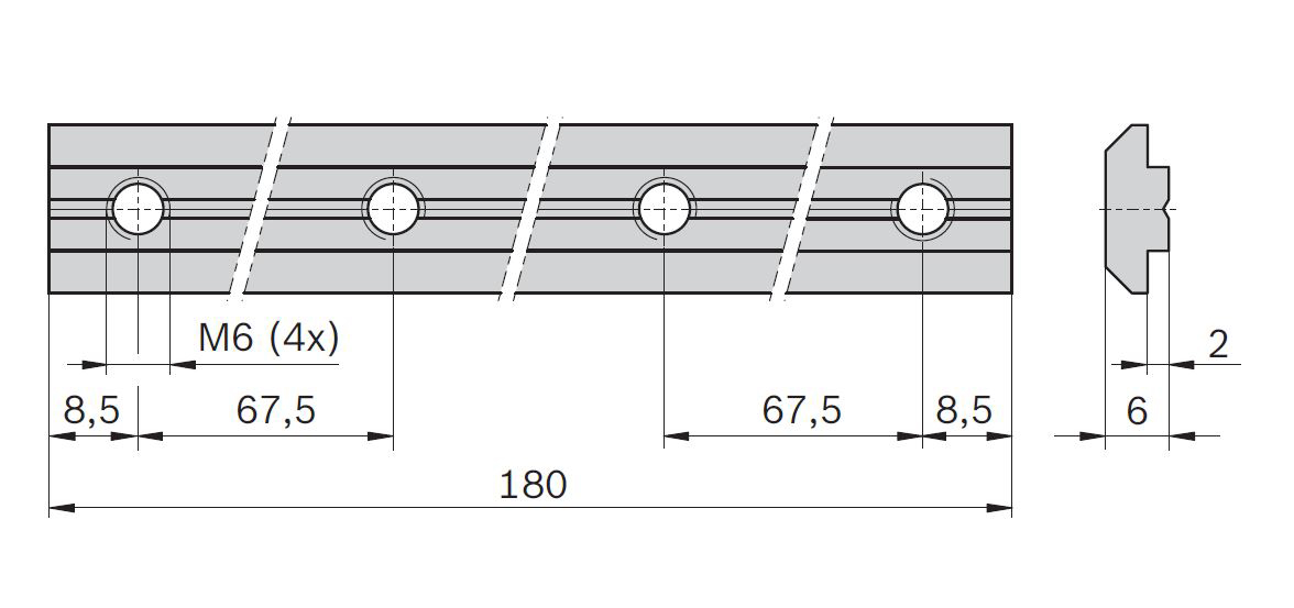 | Description | Genuine Bosch Rexroth 180mm Profile Connector, 8mm Slot |