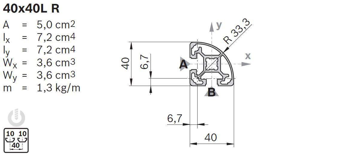 | Description | Aluminium Light R Strut Profile | 10mm groove | 40 x 40mm | Genuine Bosch Rexroth |
