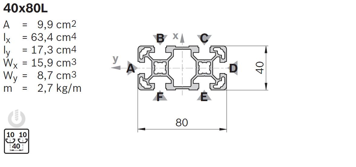 | Description | Aluminium Light Strut Profile | 10mm groove | 40 x 80mm | Genuine Bosch Rexroth |