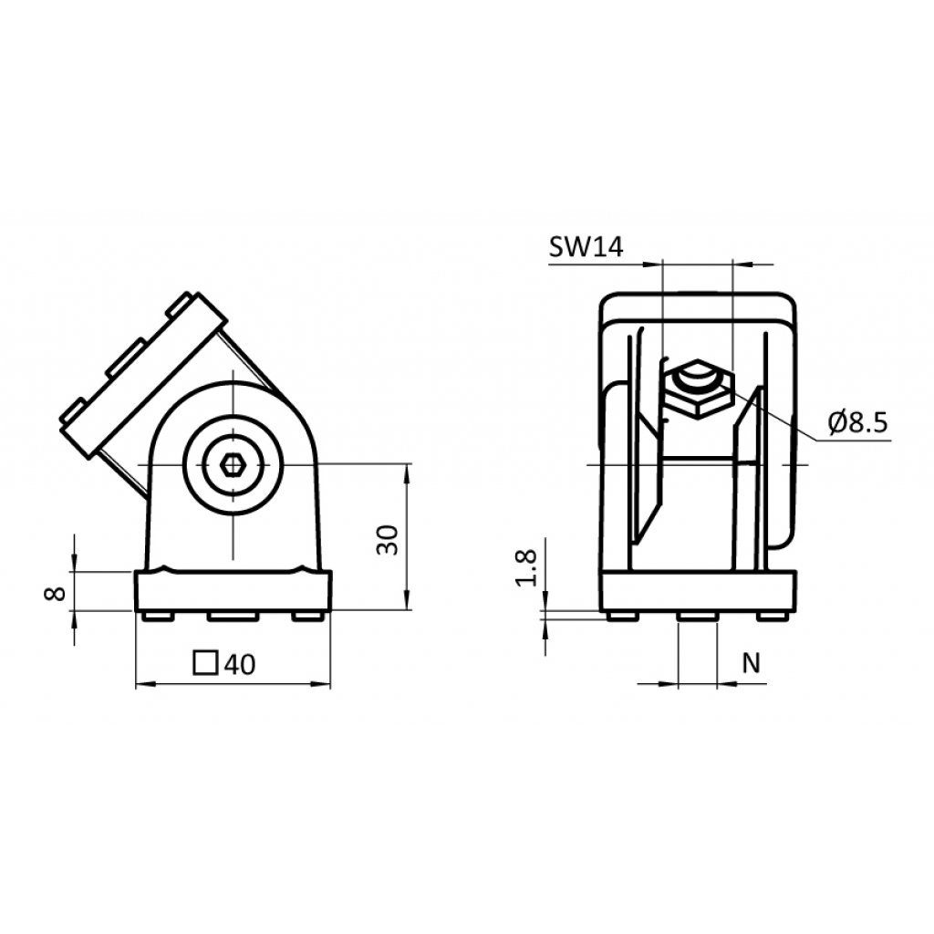 | Description | Part-on Range 40 x 40mm Swivel Joint, 8 & 10mm Slot Bosch Rexroth Compatible |