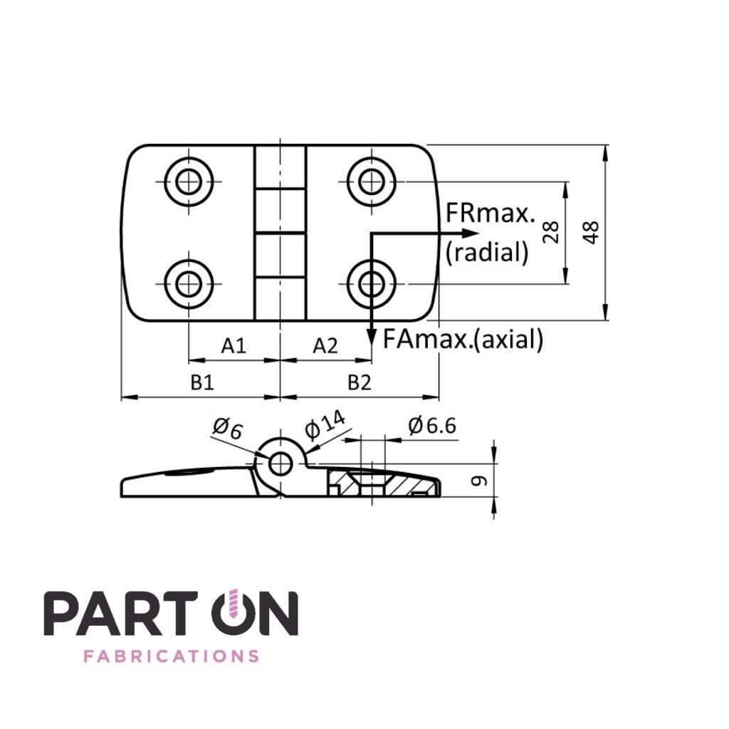Part-on Range 45 x 45mm Non-Detachable Combi Hinge Bosch Rexroth Compatible.