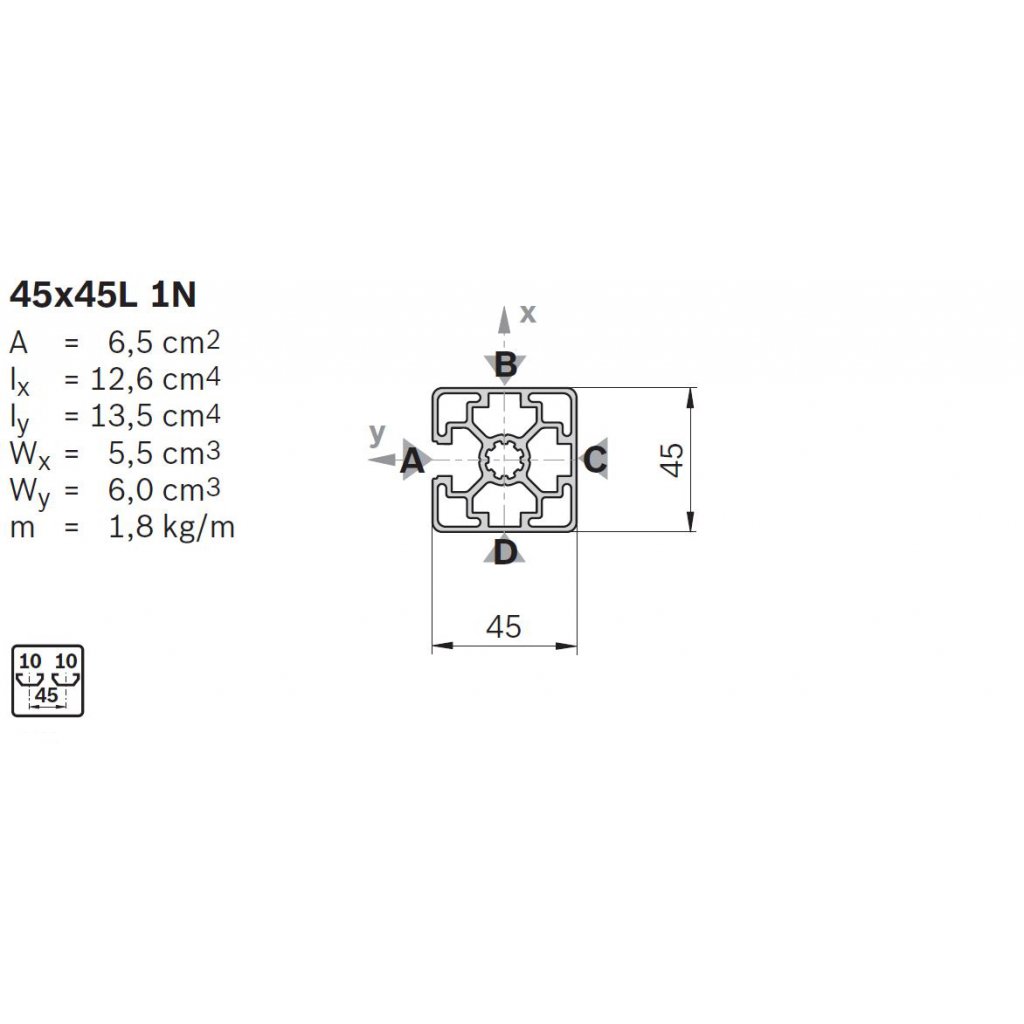 | Description | Aluminium Light Strut Profile | 10mm groove | 45 x 45mm | 1N | Genuine Bosch Rexroth |
