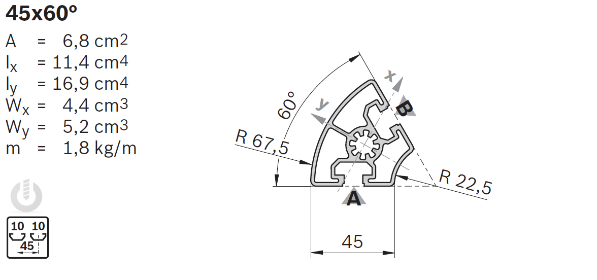 | Description | Aluminium Strut Profile | 10mm groove | 45 x 60° | Genuine Bosch Rexroth |