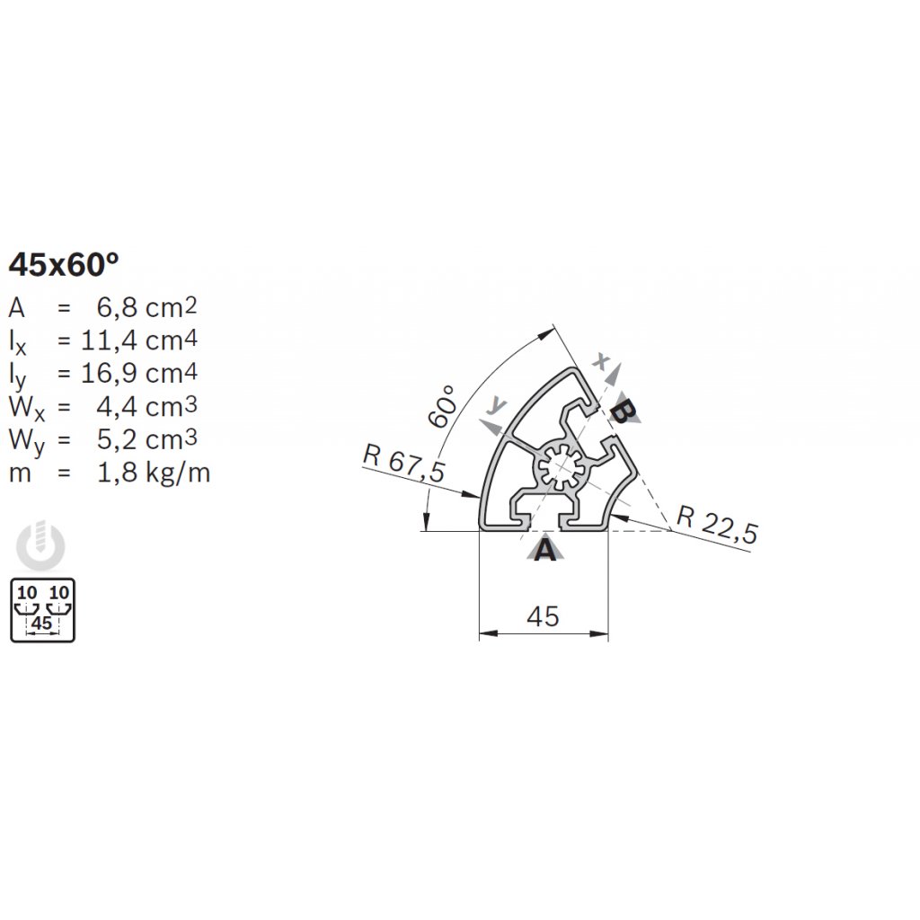 | Description | Aluminium Strut Profile | 10mm groove | 45 x 60° | Genuine Bosch Rexroth |