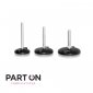 A swiveling leveling foot which can be fixed to the floor