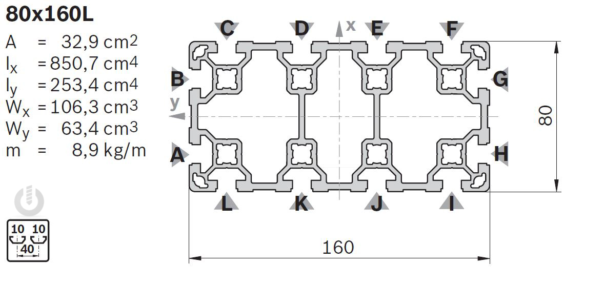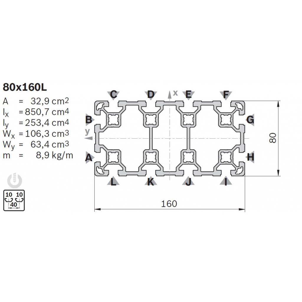 | Description | Aluminium Light Strut Profile | 10mm groove | 80 x 160mm | Genuine Bosch Rexroth |