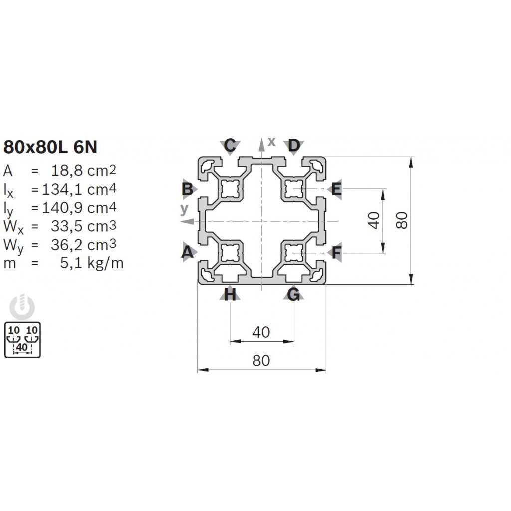 | Description | Aluminium Light Strut Profile | 10mm groove | 80 x 80mm | 6N | Genuine Bosch Rexroth |