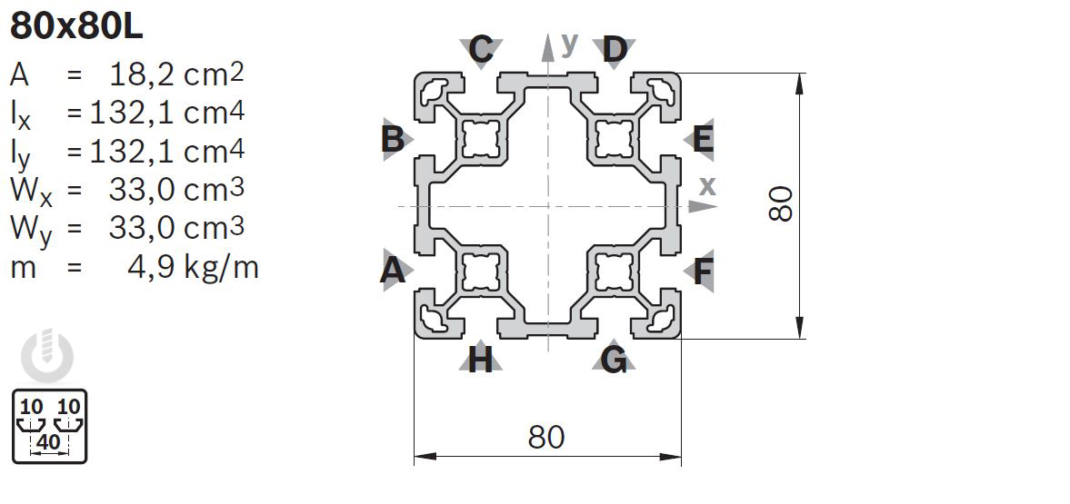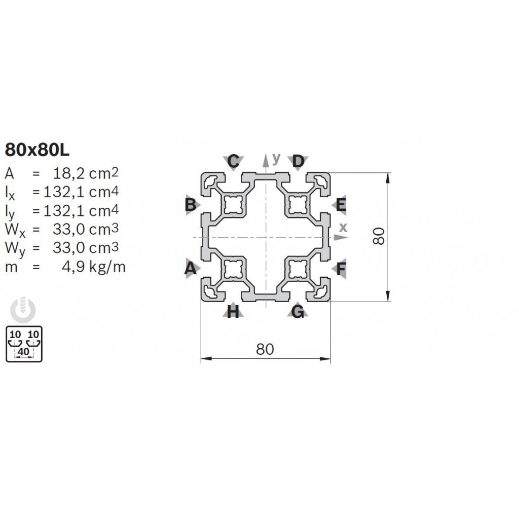 | Description | Aluminium Light Strut Profile | 10mm groove | 80 x 80mm | Genuine Bosch Rexroth |