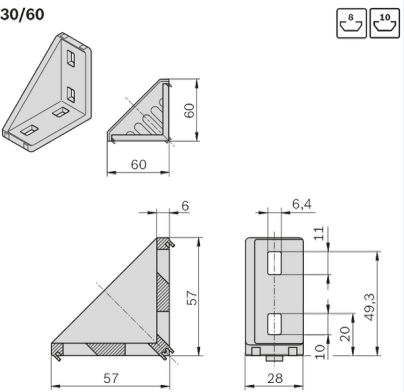 | Description | Genuine Bosch Rexroth 30 x 60mm Standard Bracket, 8mm Slot |
