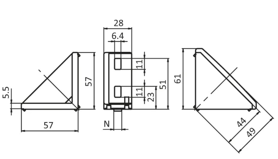 Bracket with centering lugs for rapid, precise assembly with protection against turning. Centering lugs can be easily broken off for assembly on plates or at right angles to the slot if required.
