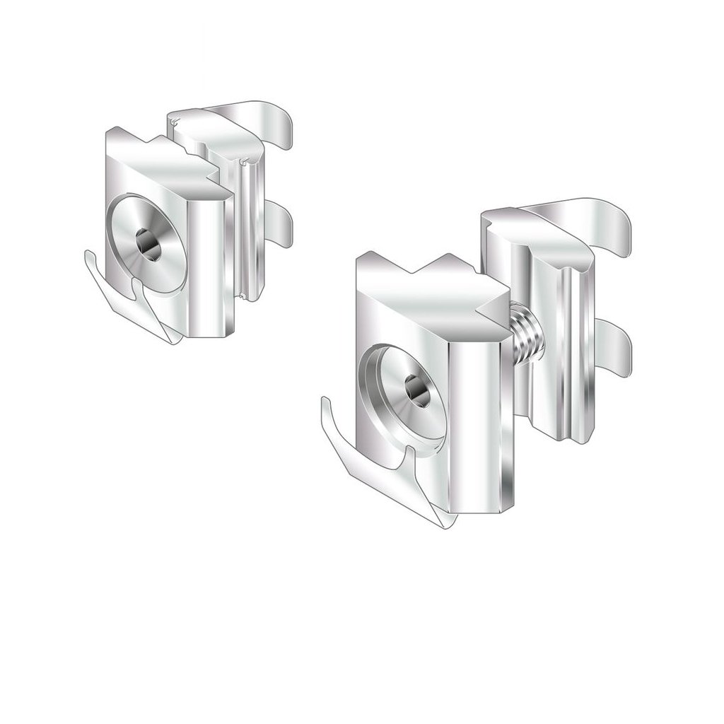 For a gap free connection between two strut profiles paralel to the axis or at any angle. Parallel connector consisting of two sliding blocks with welded springs for simple assembly. Attractive interior connection, e.g for material shelves. Connection possible in any position.