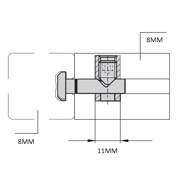 Quick Connector which enables you to connect a 8mm slotted profile to another 8mm slotted profile.