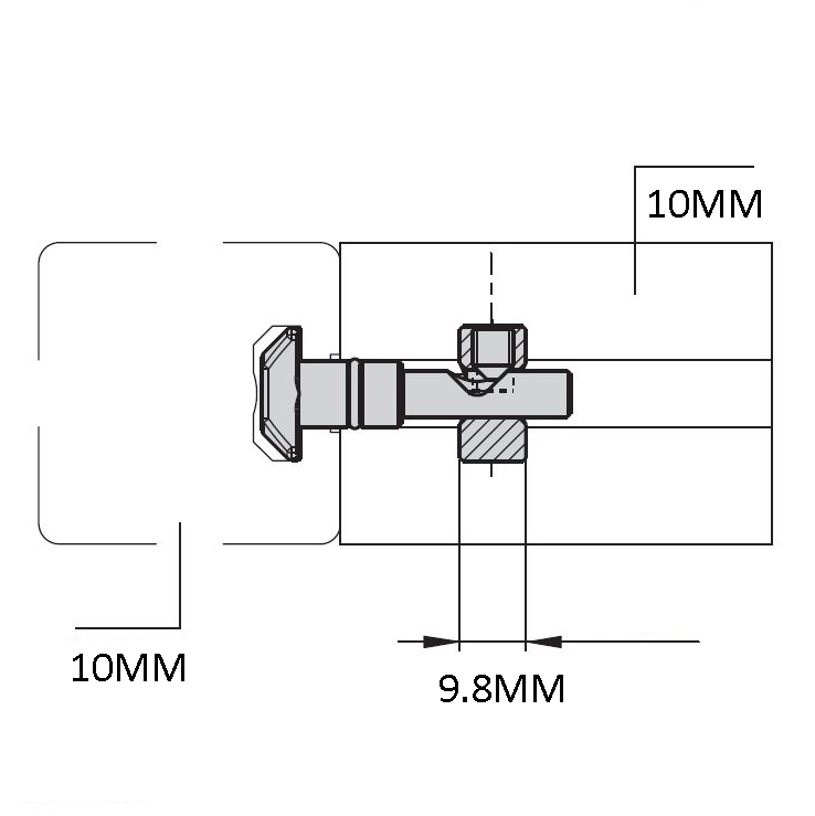 Quick Connector which enables you to connect a 10mm slotted profile to another 10mm slotted profile.