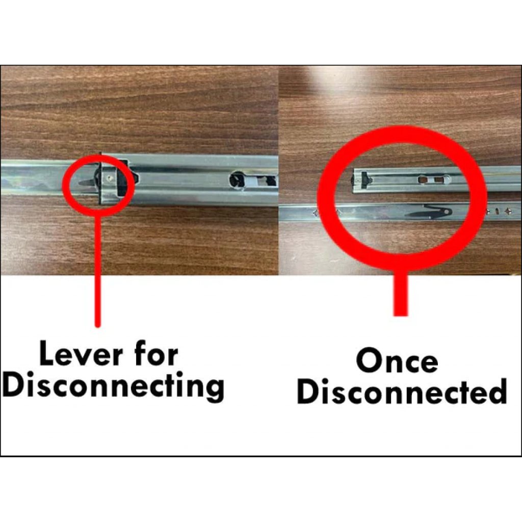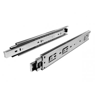 Our ball bearing (45kg) drawer slide has a;45mm profile height, 45kg load rating, and 500mm closed length with a further 500mm extension (1000mm open length). This medium-duty range drawer slide features a quick-release lever for easy installation. This drawer runner is designed to be fitted between a unit side and a drawer side.