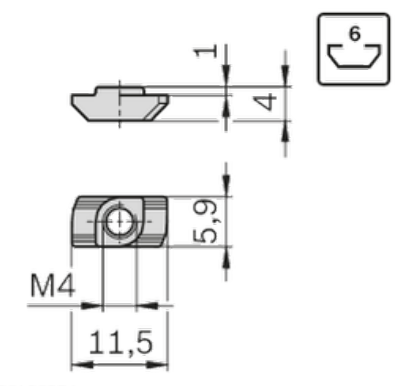 | Description | Genuine Bosch Rexroth T-Nut M4, 6mm slot |