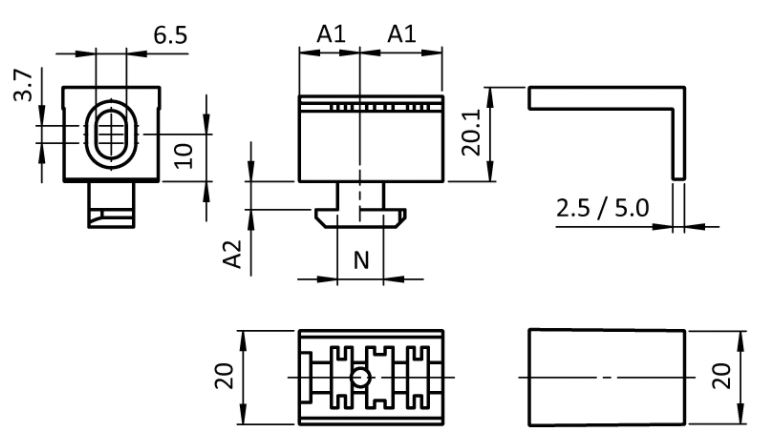 | A1 | 2.5: 13 / 15.5* / 17.5 / 20* 5.0: 13 / 18* / 17.5 / 22.5* mm |
