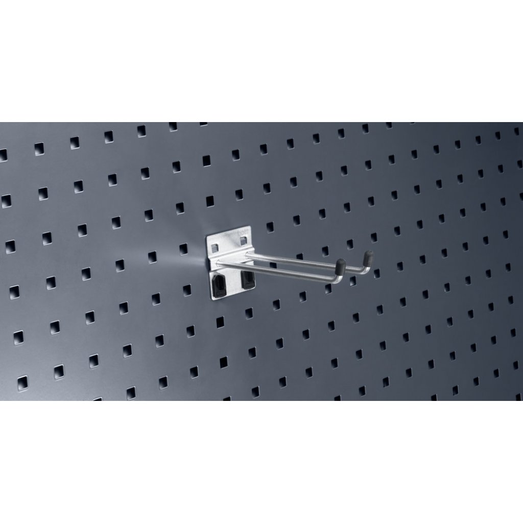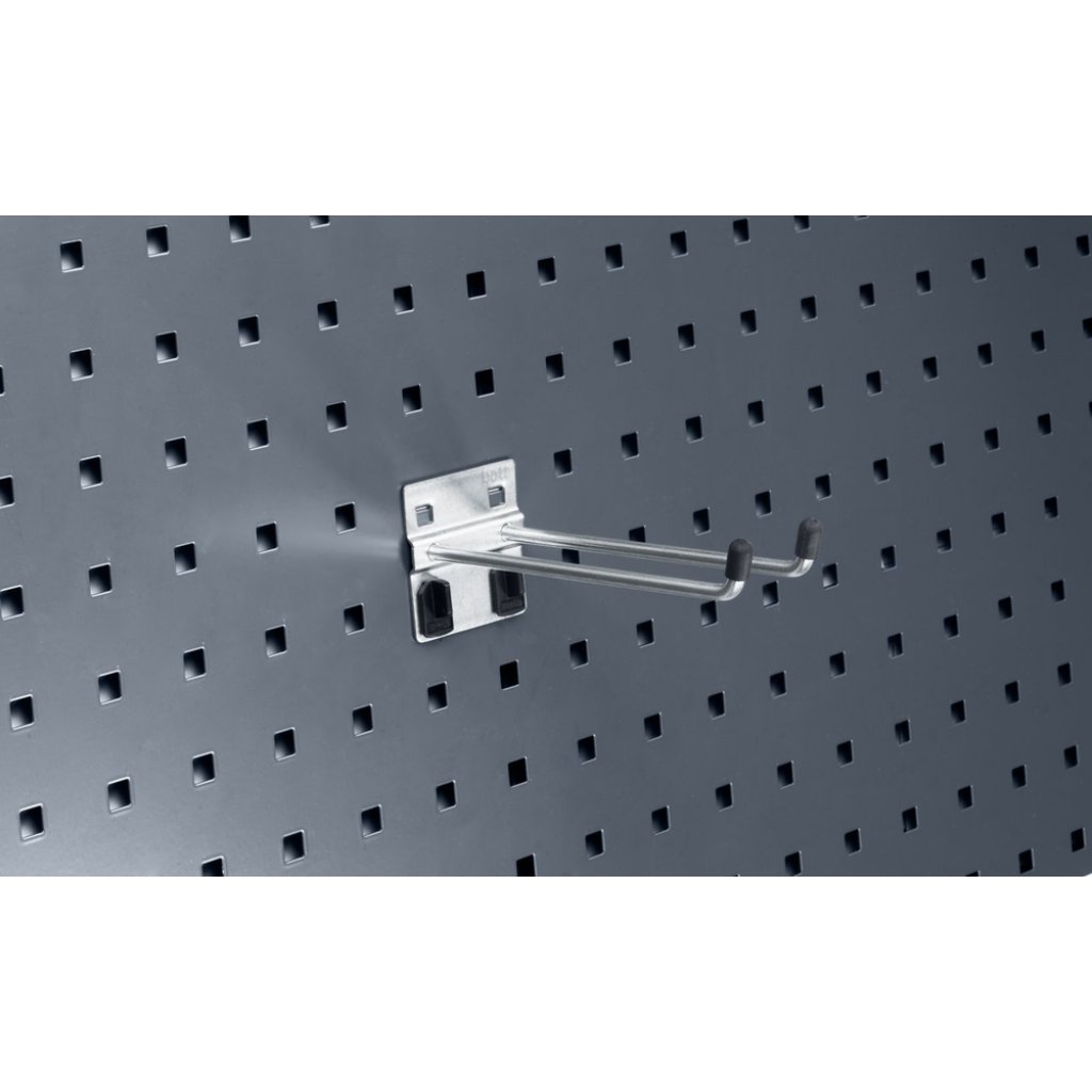 6mm dia hooks with a durable zinc plated finish, Fits to perfo panel with quick fix perfolock enabling easy repositioning.