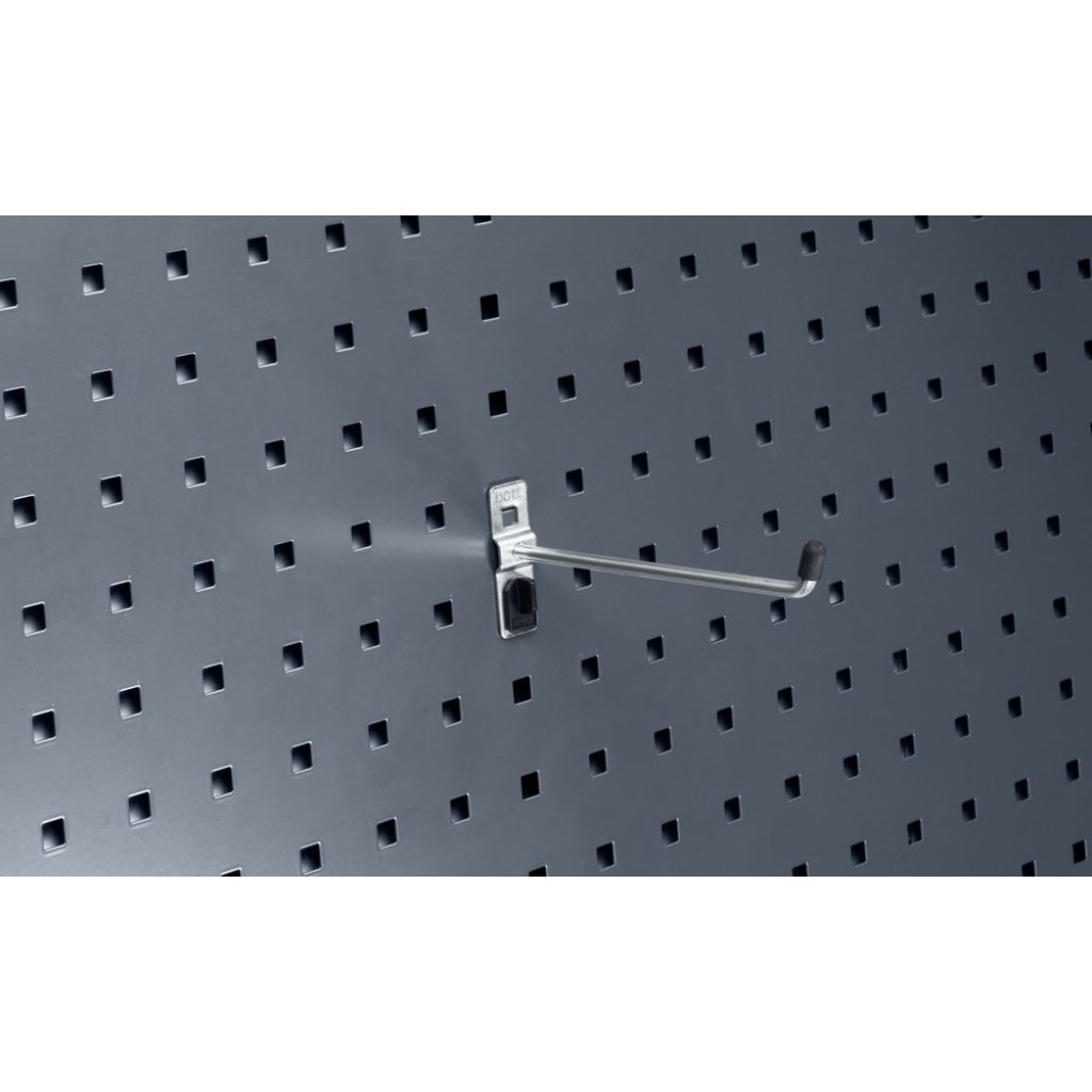 6mm dia hooks with a durable zinc plated finish, Fits to perfo panel with quick fix perfolock enabling easy repositioning.