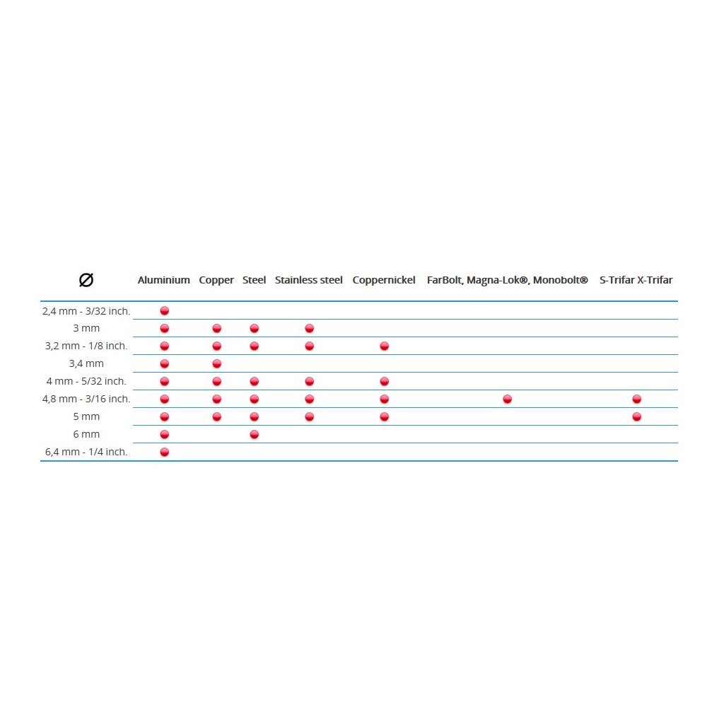 | Rivet Type | Aluminium | Steel | Stainless Steel |