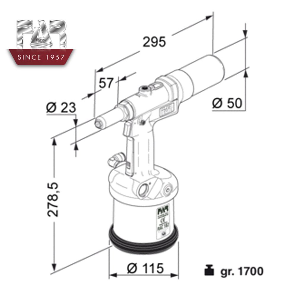 The FAR RAC182 Riveter is a hydropneumatic tool perfect for use with blind rivets from 2.4mm up to 4.8mm in aluminium ,steel and stainless steel and up to 6.0mm in aluminium. It will also set 3.2 - 4.8mm FarBolt, Tamp, Mulinox, Trifar, Magna-Lok and Monobolt applications. All standard POP rivet nosepieces sold complete with tool.