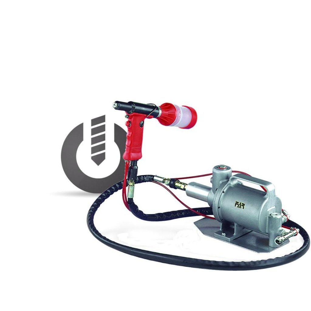 The FAR RAC2200 Riveter is a hydropneumatic tool perfect for use with blind rivets from 2.4mm up to 5.0mm in steel and stainless steel and up to 6.0mm in aluminium. It will also set 3/16" FarBolt, Magna-Lok and Monobolt applications. All standard POP rivet nosepieces sold complete with tool.