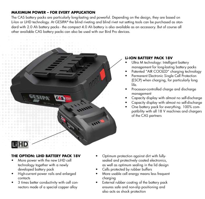 | Contents | Gesipa Accubird Pro CAS Battery Riveter |