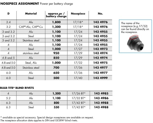 Please Note: The nosepiece required may depend on your fastener , please see the Tech Spec section for the nosepiece assignment table.