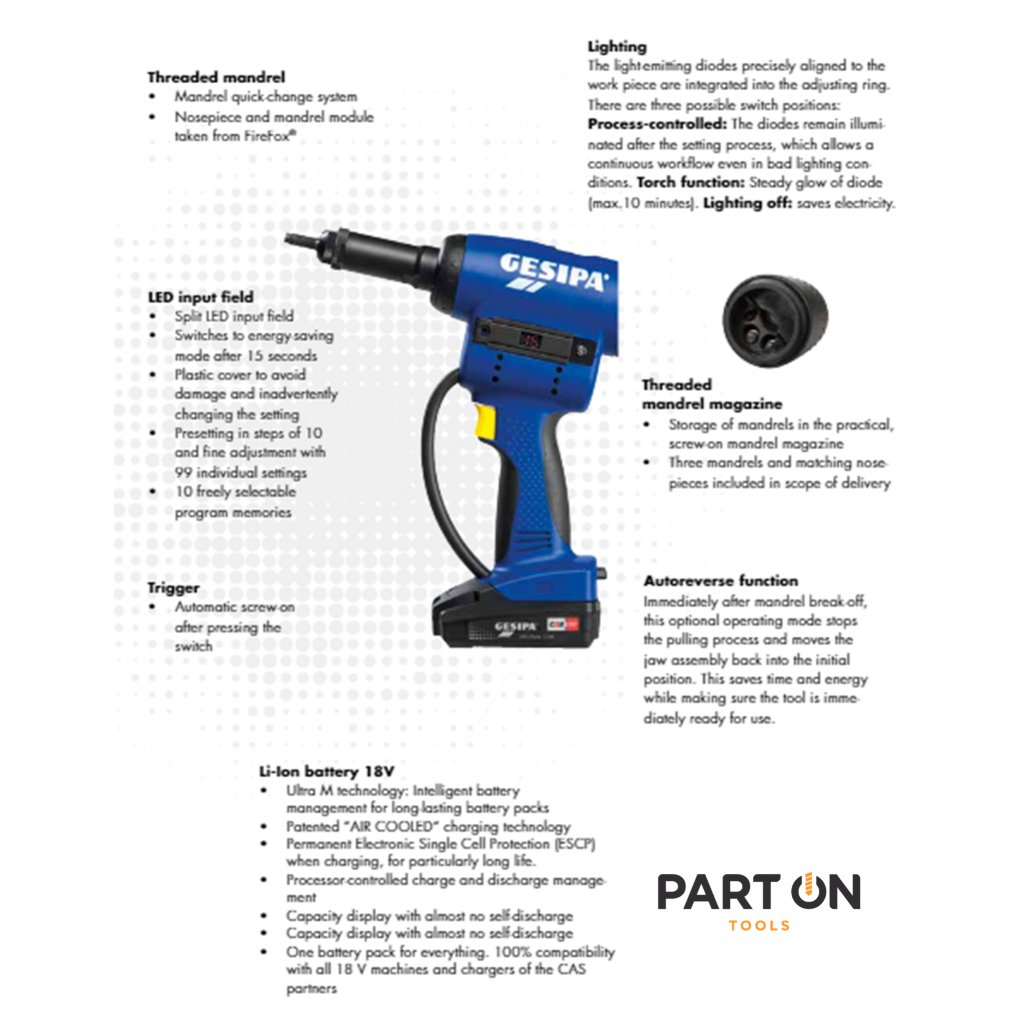 | Contents | Gesipa Firebird Pro Gold Battery Riveter |
