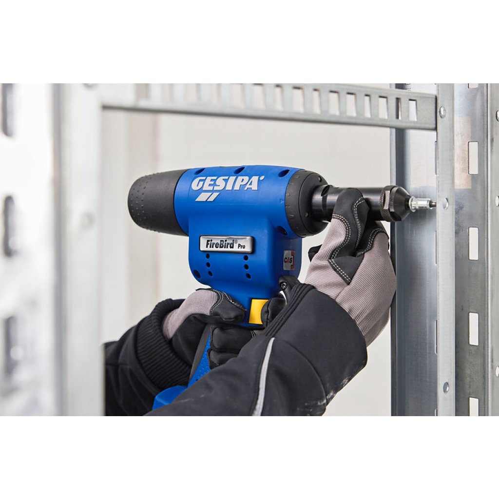The Gesipa Firebird Pro S Gold Battery Riveter is used to fasten blind rivet nuts in a wide range of materials including Aluminium, Steel & Stainless Steel.