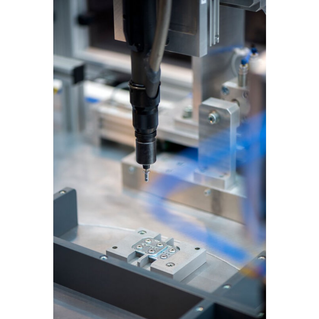 Fully automatic blind rivet system with setting process monitoring for industrial production.