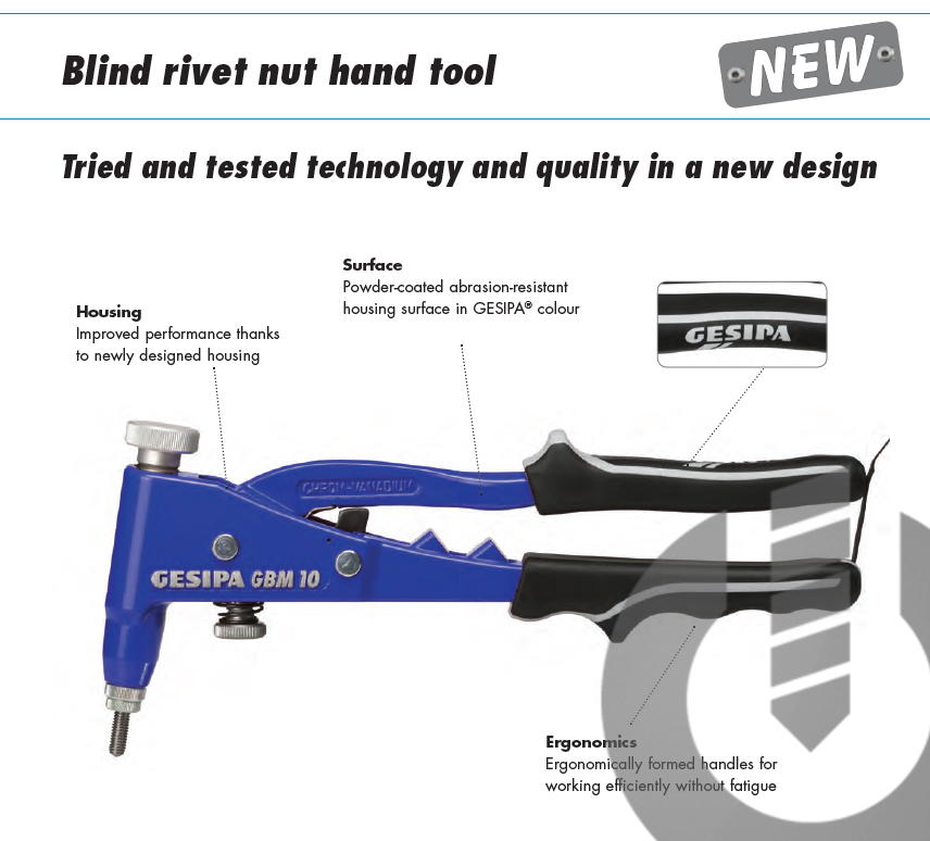 | Contents | Gesipa GBM10 Hand Rivet Nut Tool & Nose Assembly. (Please Choose) |