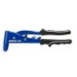 The ergonomic handles allow the tool to work easily and pleasently. Difficult to access areas can be reached easily with the narrow head. The body head of the NTX is made of forged steel and the body casing of high-quality die cast aluminium. The intermediate lever system of the NTX reduces the force required and dampens the tear-off effect. The narrow pliers head allows to reach difficult to access rivets. This tool can also be purchased with a self opening spring which allows the ejection of the mandrel automatically if required.