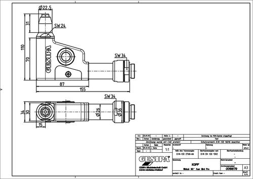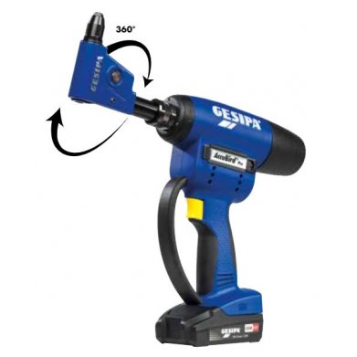 The angle head 90° can set standard blind rivets with a diameter up to 6.4 mm in all materials and 8 mm in aluminium with a setting force up to 20 kN. The smallest edge distance is 15 mm, the head length 110 mm.