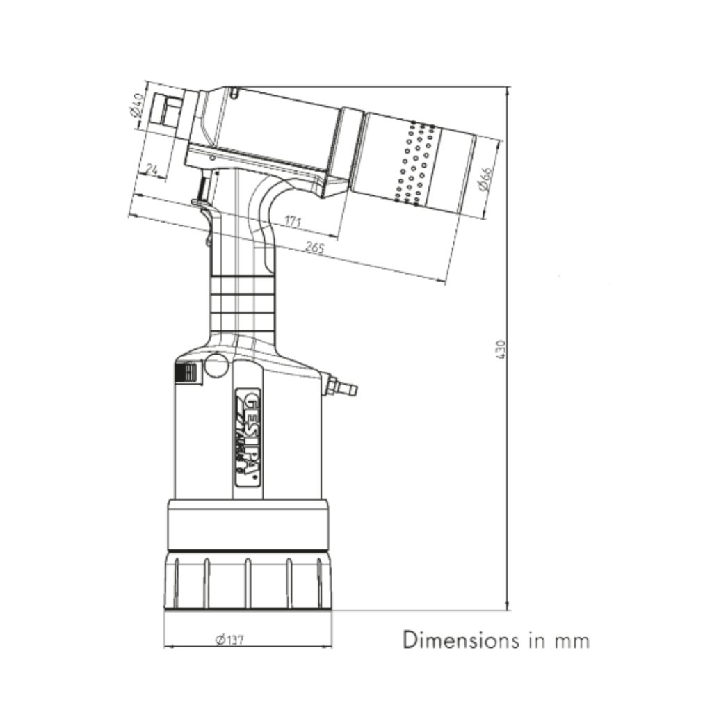| Air Consumption | Approx. 6.9 ltr. per rivet |