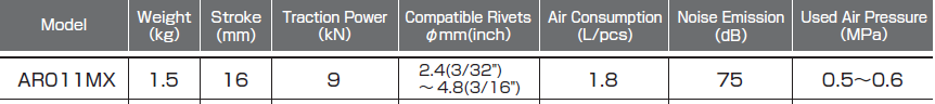 The Lobster AR-011MX rivet tool is a lightweight pneumatic tool. This tool also offers excellent value for money with a lower noise level.