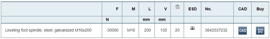 | Description | Genuine Bosch Rexroth M16 x 200mm Leveling Foot Spindle |